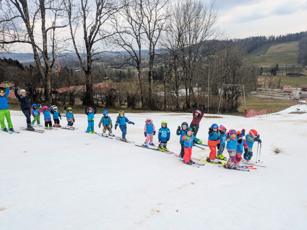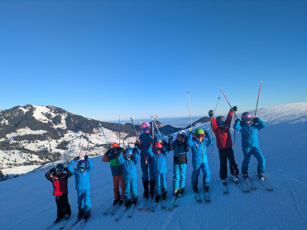Stangen- und Tiefschneefahren sowie das Springen über Schanzen gehören zum vielseitigen Programm. Im Spätherbst und Frühwinter starten wir auf dem Gletscher in die Saison, während wir im Hochwinter meist am Spitzingsee oder in Ostin unterwegs sind.